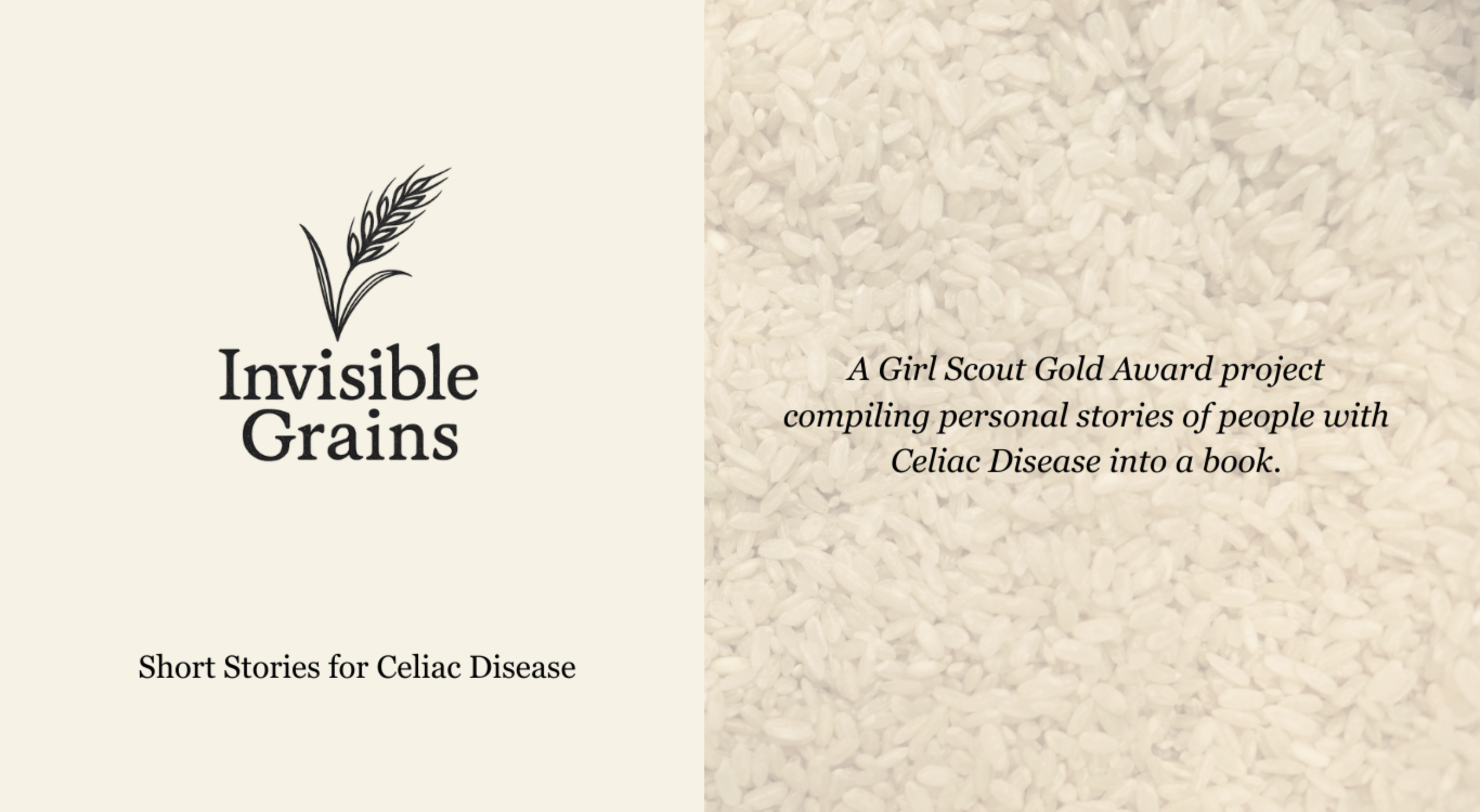 The Gold Award is the highest recognition that a Girl Scout can receive. It is designed as a “take-action” project in which a Girl Scout identifies a problem with a related community in need and then solves that problem with a sustainable action. As invisible grains is part of a Gold Award project, its impact and sustainability must be measured. Please take a second to fill out my feedback form to help me determine how the book affected you!